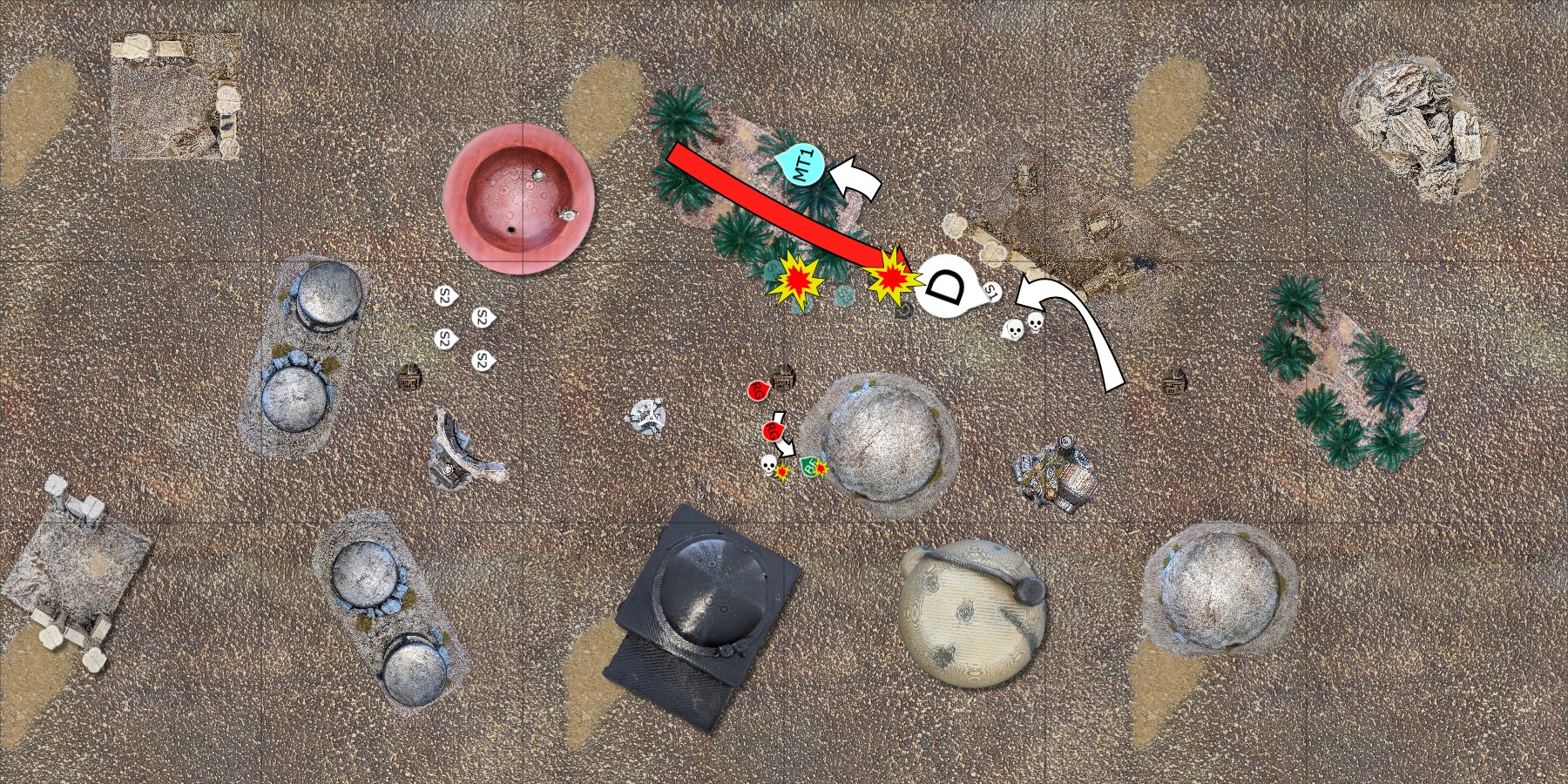 James - Random draw Rebel troopers (RT2). They move to line of sight of the Shoretroopers (S3) dealing only a suppression damage.
